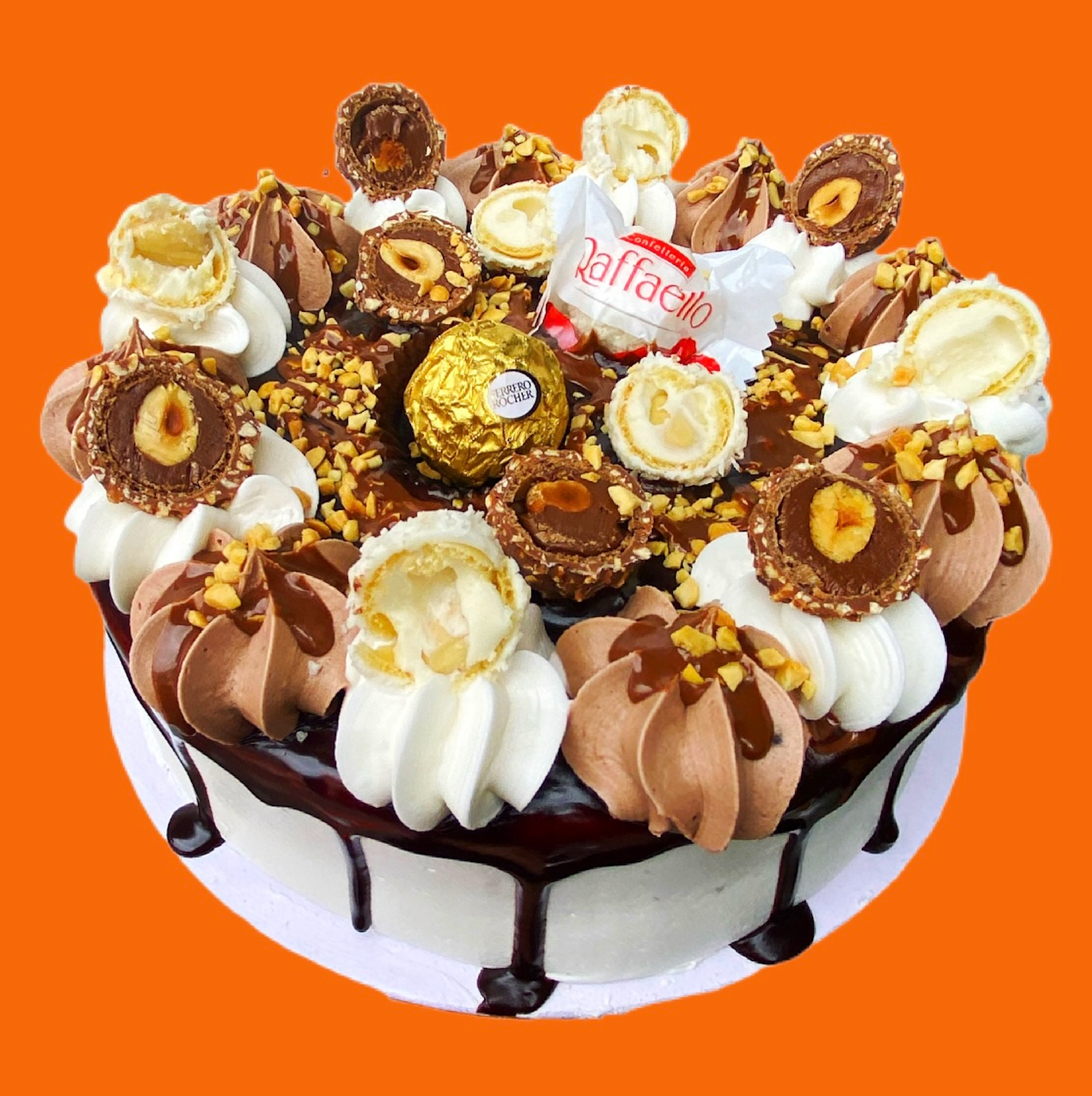 Cake Flavour: Chocolate cake decorated with Raffaello, Ferrero & Nutella