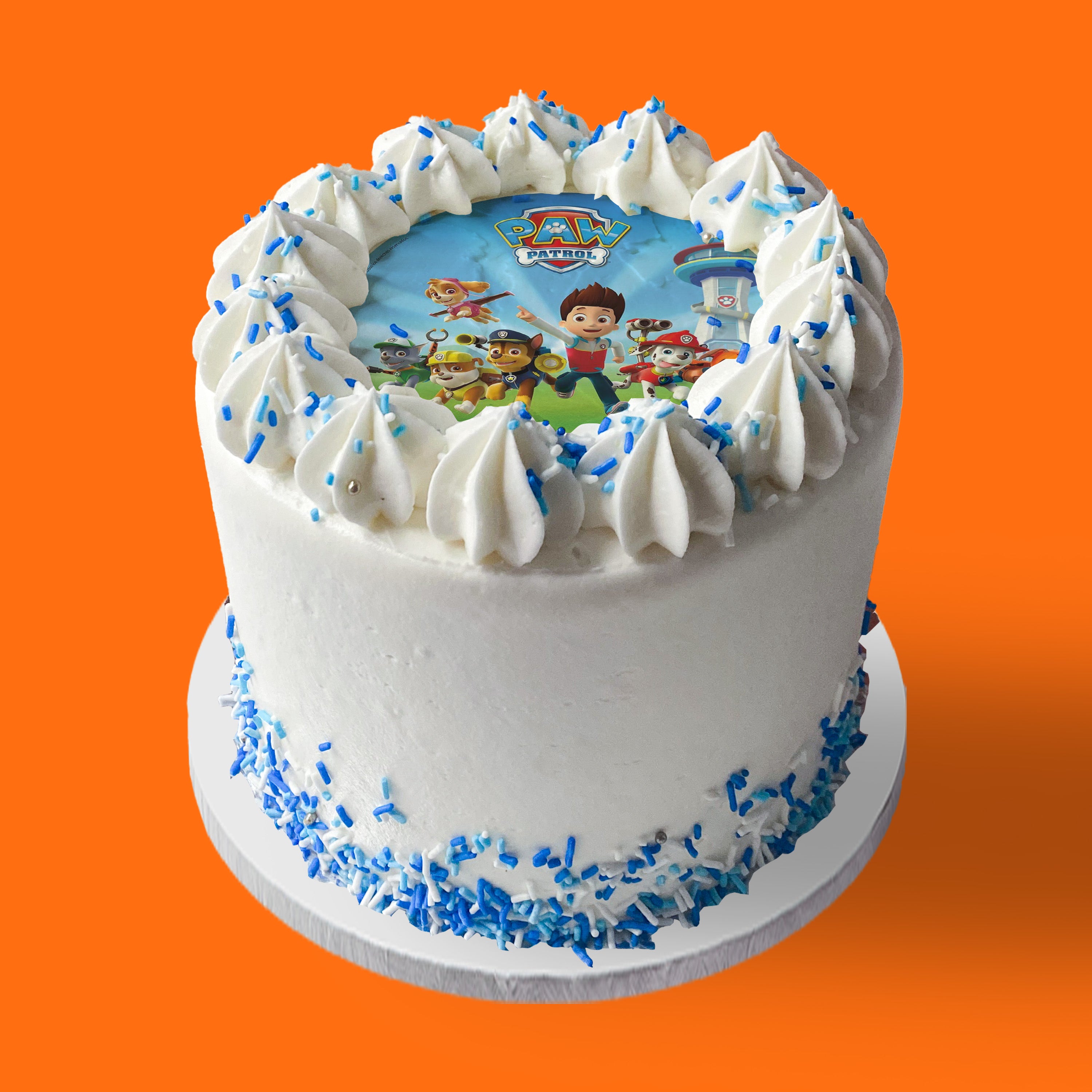 Treat the little pup-lovers in your life to this totally PAW-some cake - a delicious chocolate cake with vanilla frosting, decorated with all their Paw Patrol favourites!